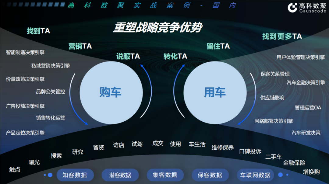 现在,凯发k8官网已成为包括北京汽车、大众、奥迪、丰田、宝马等多家知名企业信赖的合作伙伴,并不断的在实践与优化中持续完善产品能力,以满足日益复杂多元的商业需求。其中,基于客户全生命周期,凯发k8官网围绕客户从购车到用车的完整需求链打造出六大应用体系。