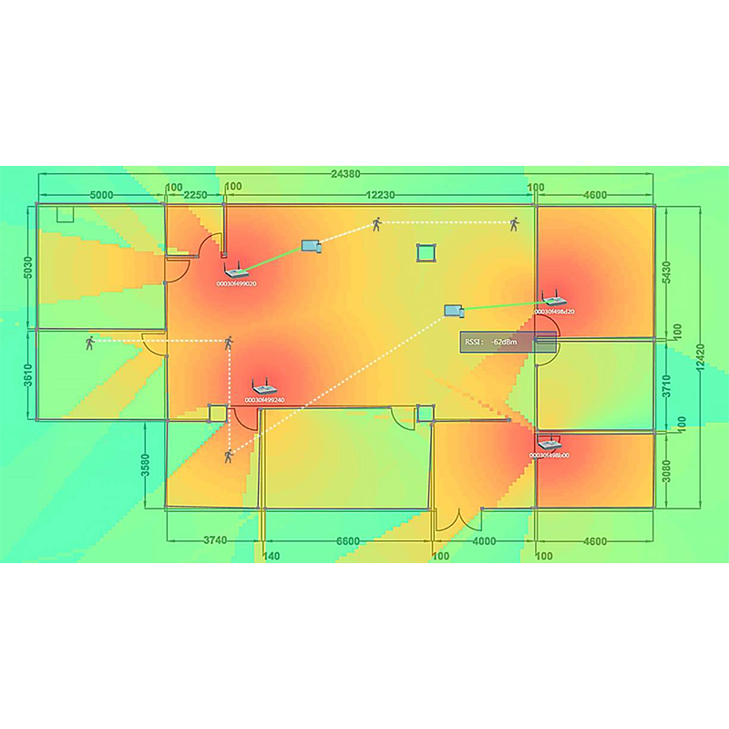 系统设有无线管理功能,能够实现对AC、AP、终端的实时监控,支持无线拓扑设置,支持在地图上定义影响信号衰减的障碍物,支持在地图上定位客户端轨迹,可自动计算无线信号强度分布,并以热图方式直观展示无线信号覆盖范围、信号强度及分布规律。